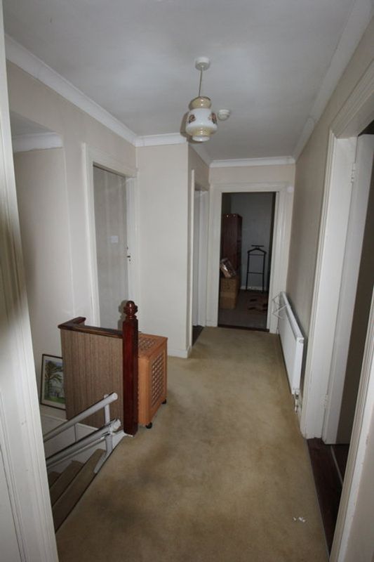 Large Entrance Hall with carpet flooring and cornicing leading to all other rooms downstairs.