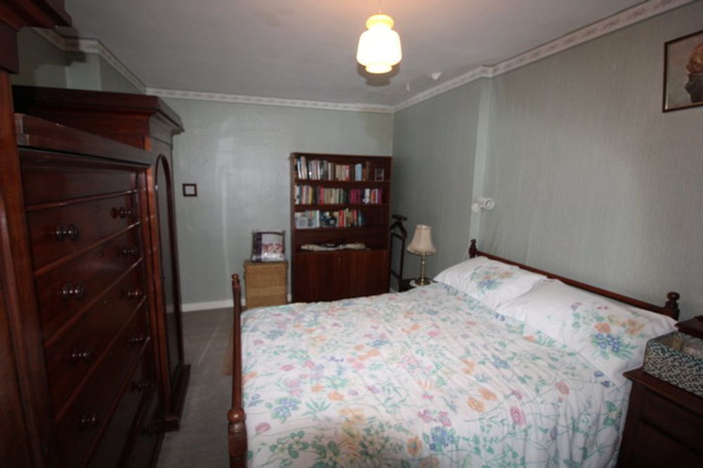 Large bedroom with carpet flooring overlooking the front garden