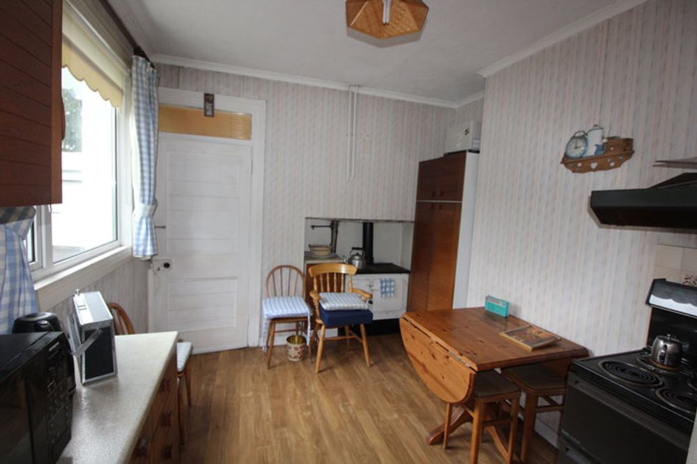 Fully fitted with eye level units along two walls, lino flooring and access to the utility room